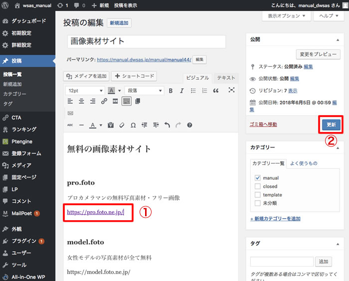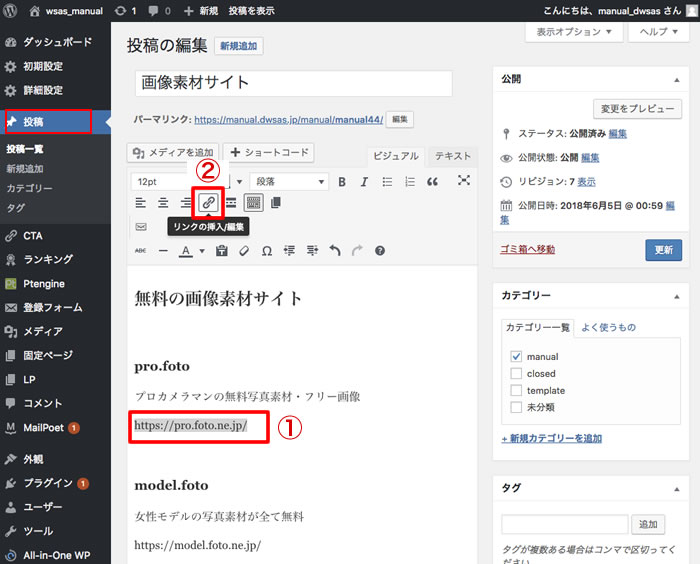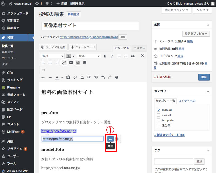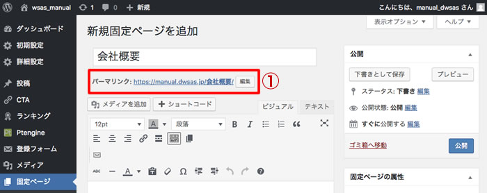 以下の手順を参考に、固定ページや投稿ページ、LPページを作成する際には、最後に、URLを英数字に変更することをお勧めします。