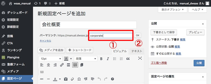 ページのURLは、なるべくシンプルな英数字が望ましいですので、