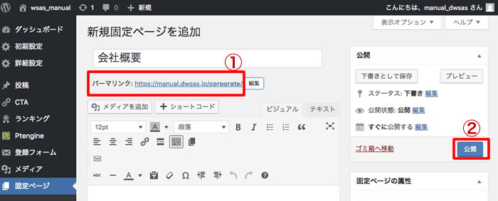 以下の手順を参考に、固定ページや投稿ページ、LPページを作成する際には、最後に、URLを英数字に変更することをお勧めします。
